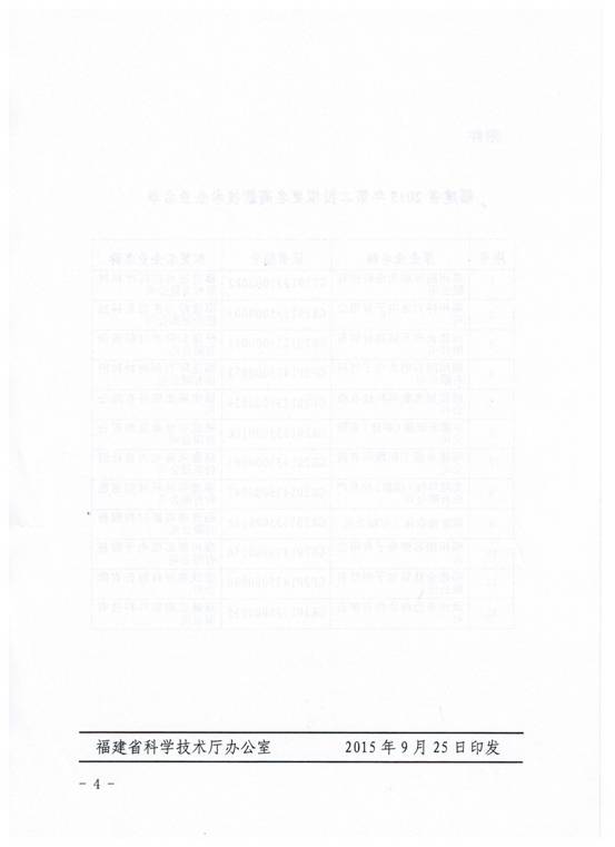 关于公示福建省2015年拟认定高新技术企业名单的通知